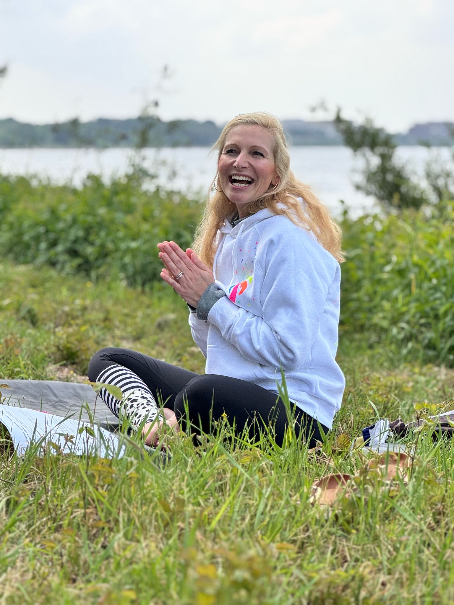 Yoga draußen in der Natur. Frische Briese. Wiesenduft. Vögelzwitschern. Wasserplätschern.